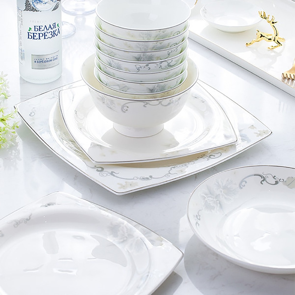 手工贴花,耐磨不掉色,优质骨瓷材质,无铅无镉,纳米釉面,不沾油污,清水一冲就干净,全套餐具微波炉、烤箱、洗碗机、消毒柜均可使用,清新淡雅的花色让用餐变成一种享受~