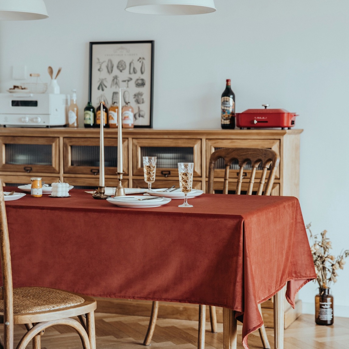 丝绒桌布自带光泽质感,搭配家居环境能提升高级感。无论是用餐或者聚会,它是一个瞬间提升餐厅氛围感的好物。