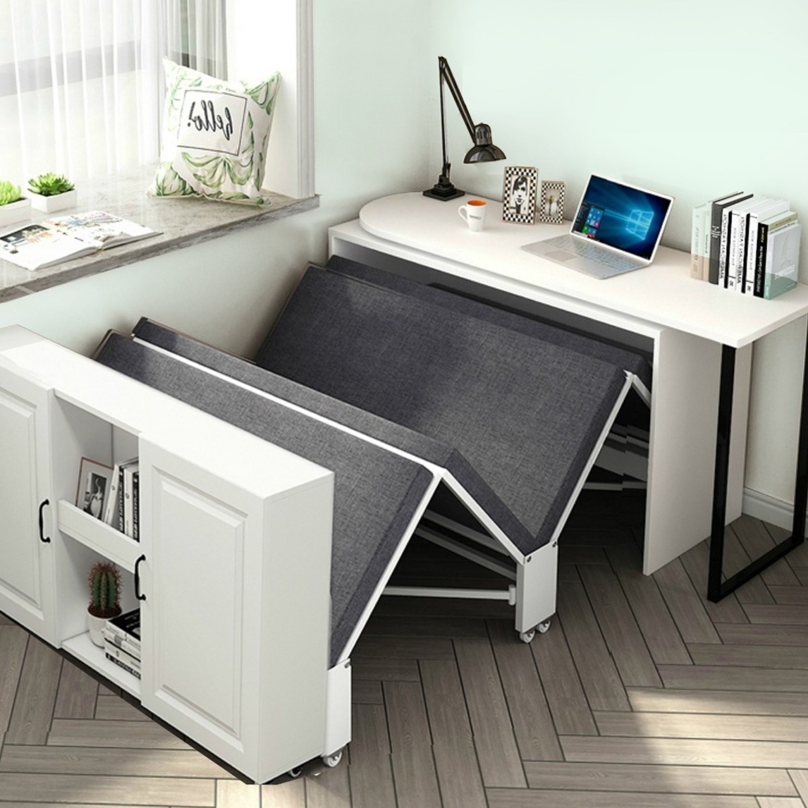 阳台也能变客房,别浪费了,放上一张书桌折叠床,床体带有滑轮,单手就能拉开、折起,平时作为书房使用,来客人也能留宿,面积不浪费~