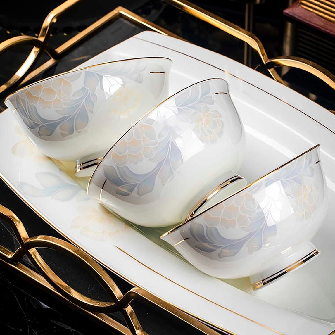 中式餐具,追求骨瓷的质感,华贵上个档次,健康环保,可微波,易清洗。花纹精美,经久耐用,不褪色不掉金。