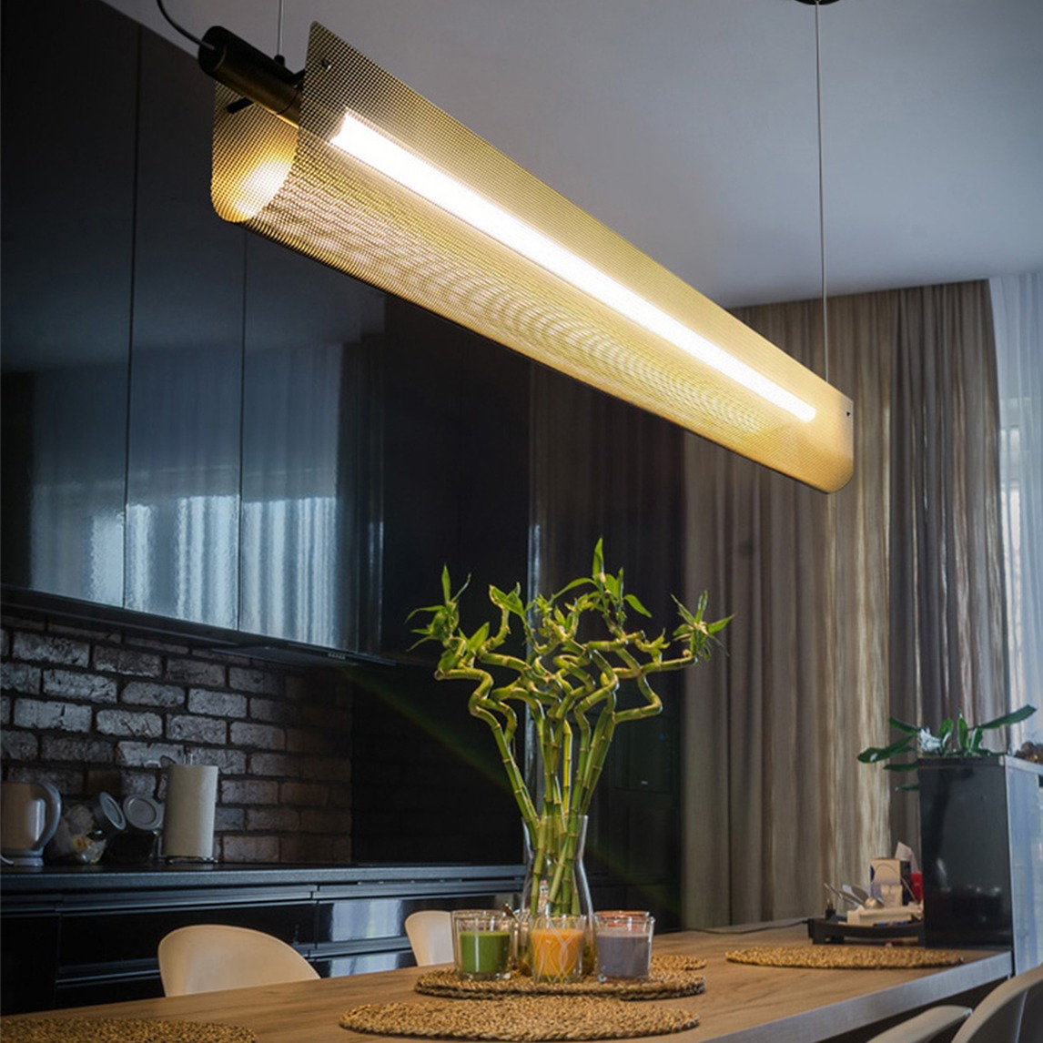 工业风设计现如今深受年轻人的喜爱,当暗黑工业风和餐厅相结合,又会迸发出怎样的魅力呢? 复古工业风吊灯魅力值up,搭配草编垫与绿植,中和了重工业感,平衡了沉闷氛围,视觉上更美观舒适。