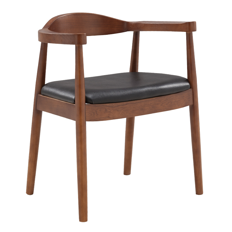 纯实木餐椅,宽扁的靠背和扶手环绕,坐起来十分舒适。设计上简约精致,没有多余棱角,每天都能带给你舒适的用餐时光。