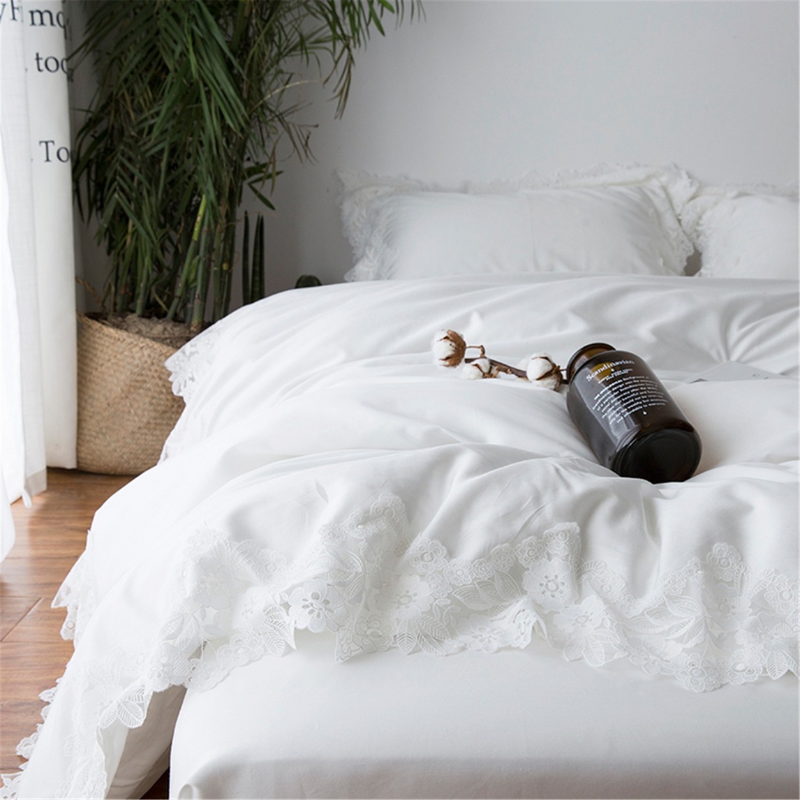 素白的主题色,高级贡缎面料,亮洁如绸,浪漫蕾丝边显得更是仙气飘飘! 喜欢躺在舒适的床上,脑袋放空,什么都不想,听着窗外的呢喃,像一首歌。