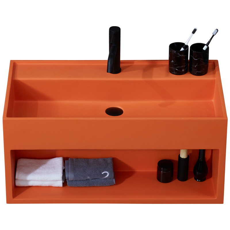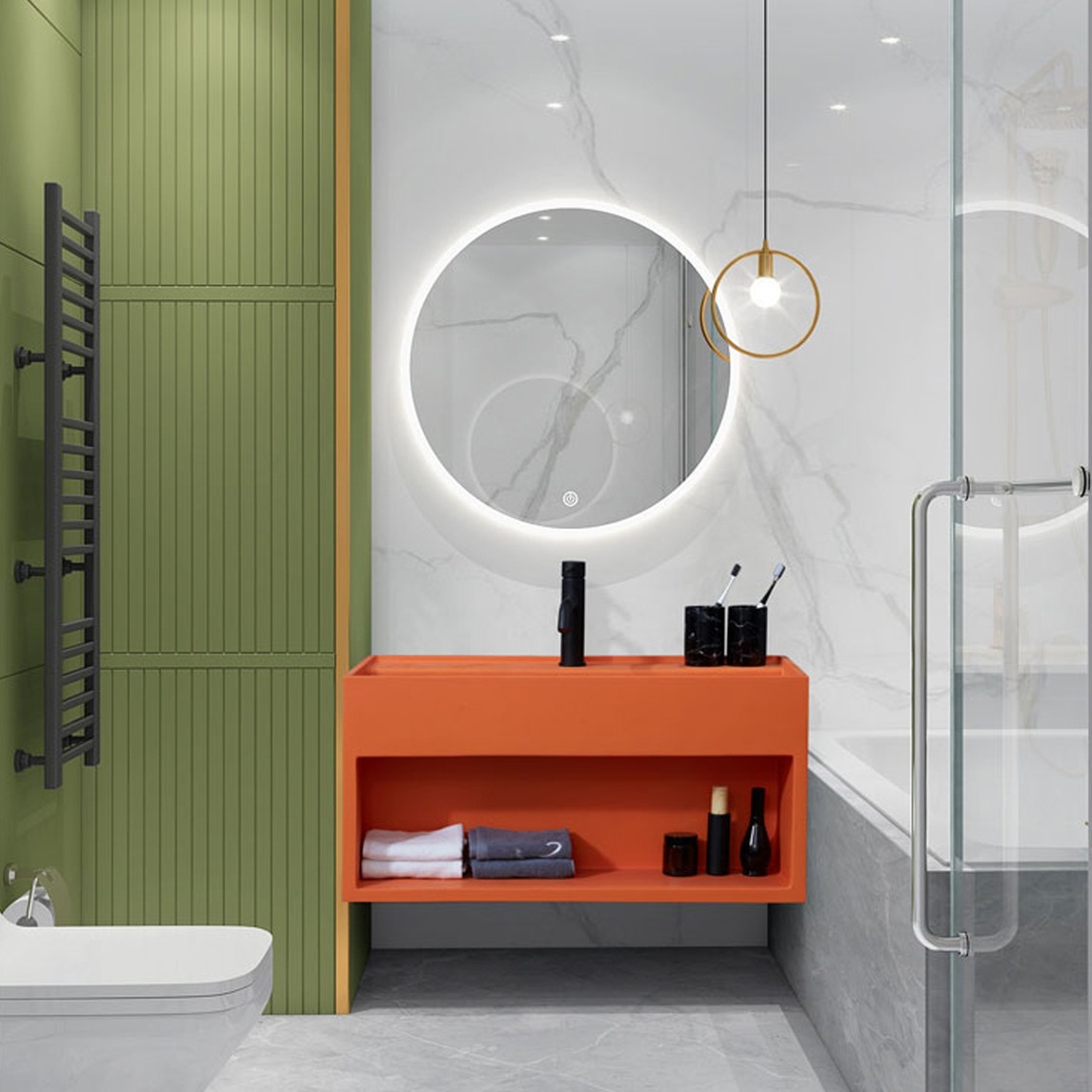 复古风情使整个空间十分浪漫,青草绿的小面积背景让卫浴间更加清新梦幻,复古橘色收纳柜与整个环境完美融合,一切恰到好处。