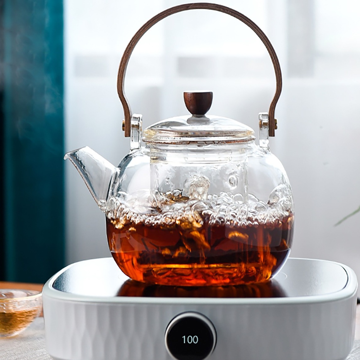 蒸煮两用玻璃壶,高硼硅玻璃材质,耐高温不炸裂,煮茶无异味,还原纯口感,搭配智能电陶炉,触屏操控,不挑壶,一键记忆,智能保温防干烧,全自动操作,还原炭火煮茶,让茶更香醇~