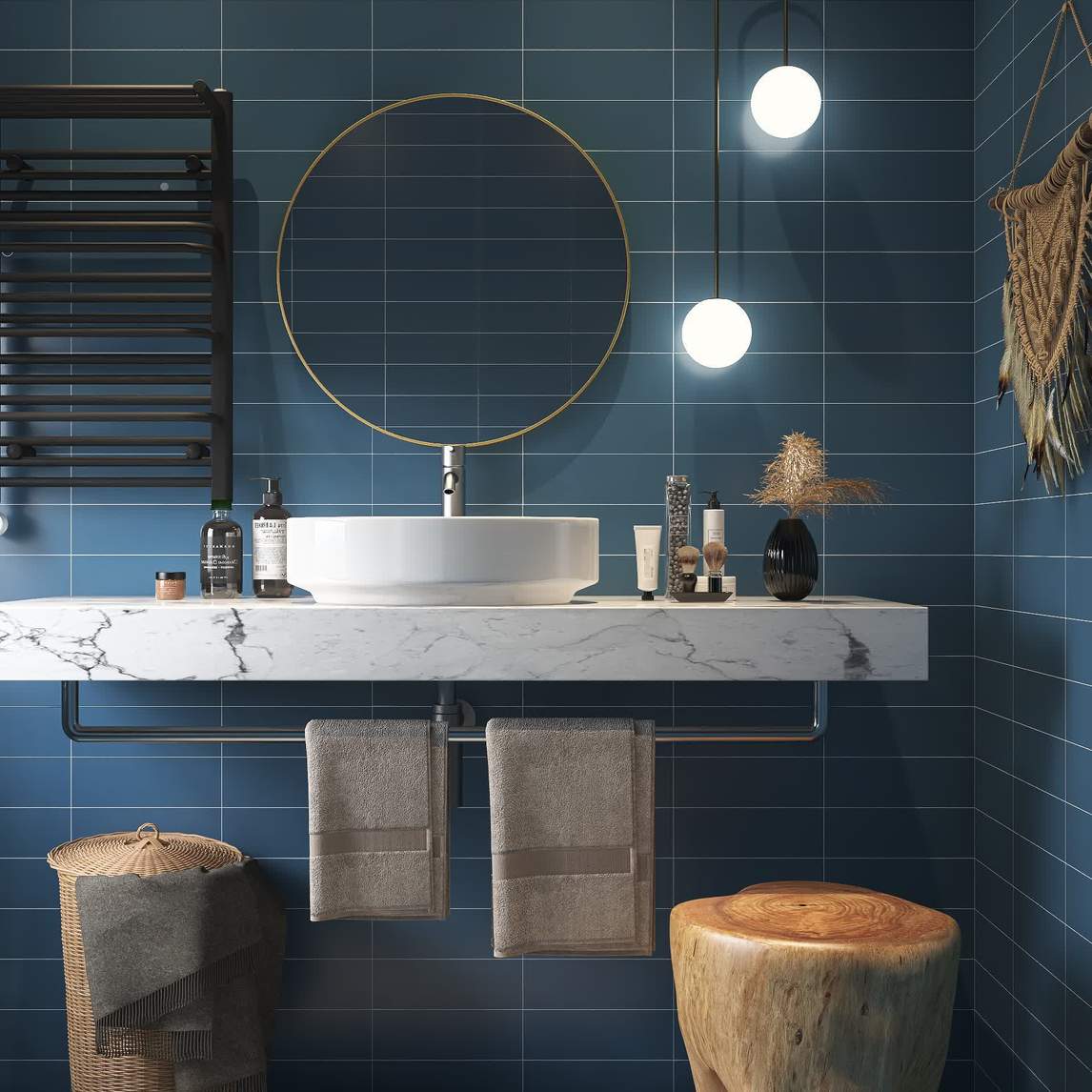 复古蓝的卫生间满足了个性人群对色彩的追求与满足,这套复古风格的主题色是蓝色色,所以一起来跟着我寻找蓝色在空间中的魔力吧。
