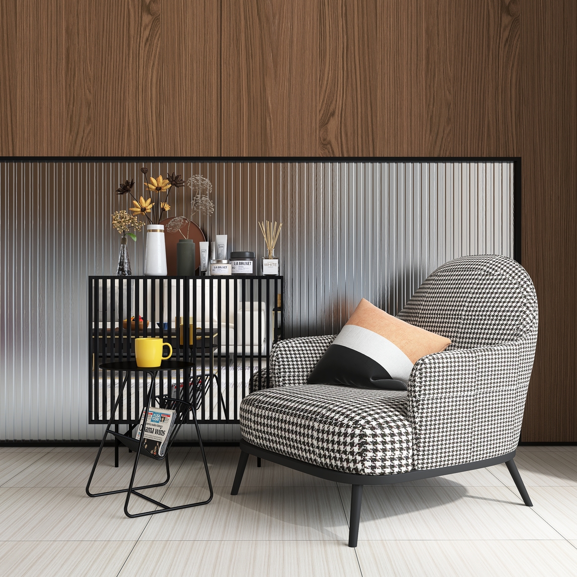 书房——学习、工作的地方,融入工业风风格的书房,更加具备一种干练、安静的感觉;铁艺材质打造的边几、加入可映影的镜面柜,搭上一款棉麻材质的沙发椅——静谧!