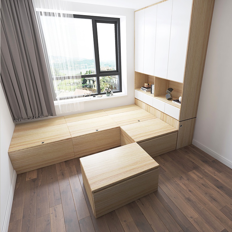 全屋定制特别适合小户型家庭,可以根据自己的房子户型进行个性化设计,空间可以合理有效的利用;像这款方案有地台、衣柜、书桌等,有大空间收纳,也有孩子独立的书桌,风格还统一美观,很适合你呦!
