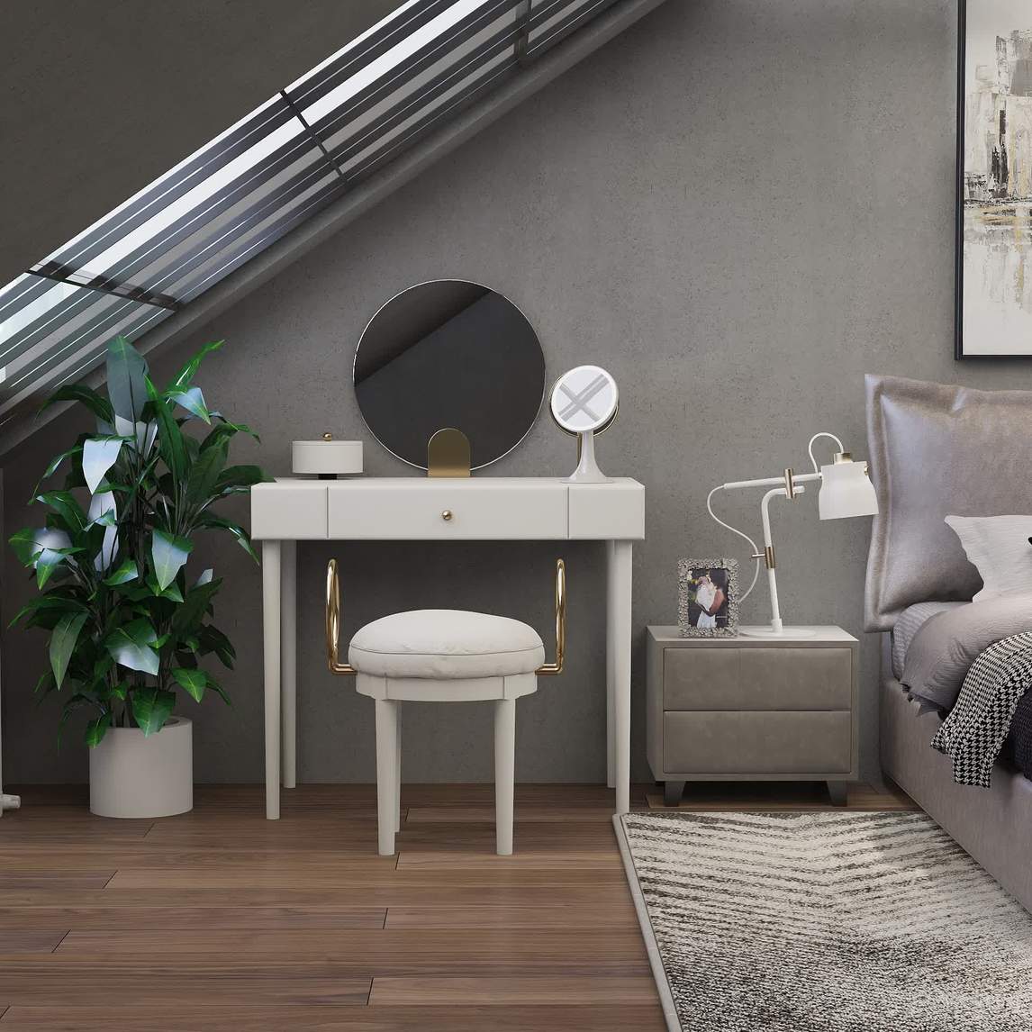 在顶层阁楼上享受属于你的美好时间。对着镜子感受美好,将一整天的美好心情留给自己。气质不凡的你需要的是一个属于你自己的梳妆空间。