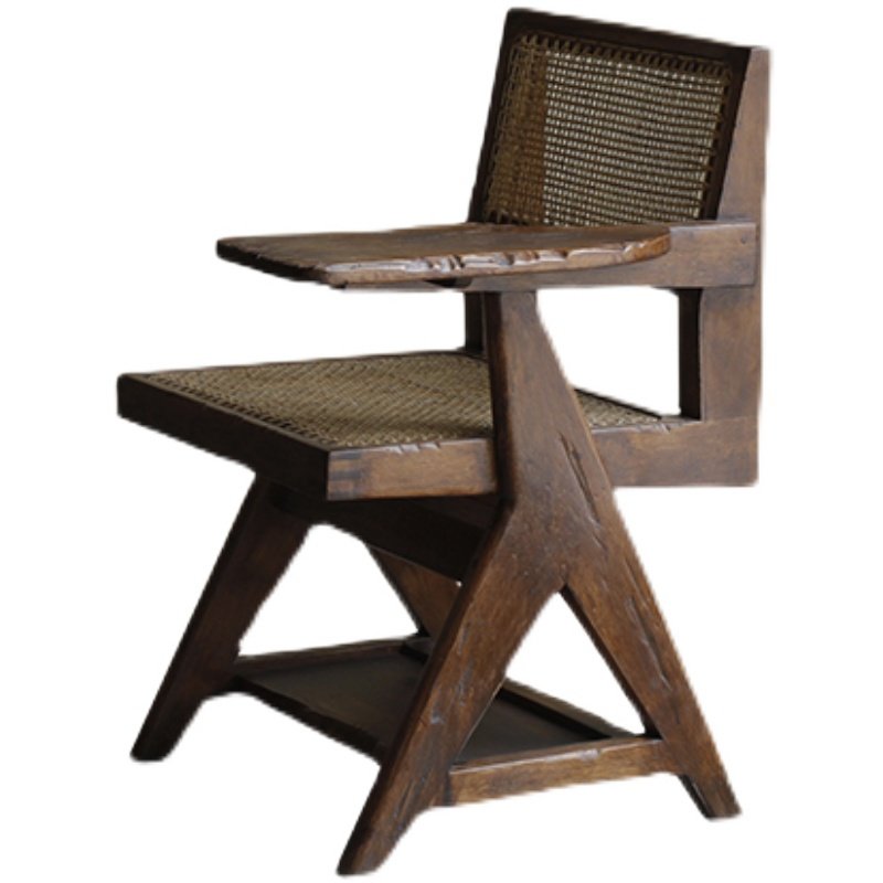 自然做旧藤编工艺单椅,工艺大师纯手工打造,编织紧密严实,精致包边,设计巧妙,古朴典雅;扶手精心包布,独具匠心,再以铆钉点缀,尽显时尚复古。