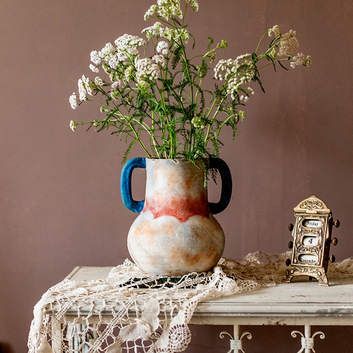 手工双耳粗陶花瓶,古朴粗犷,质朴复古韵味,风格独特经典实用。搭配着仿真花装饰着家居室内,不仅增添一抹色彩,还轻松营造浪漫氛围。