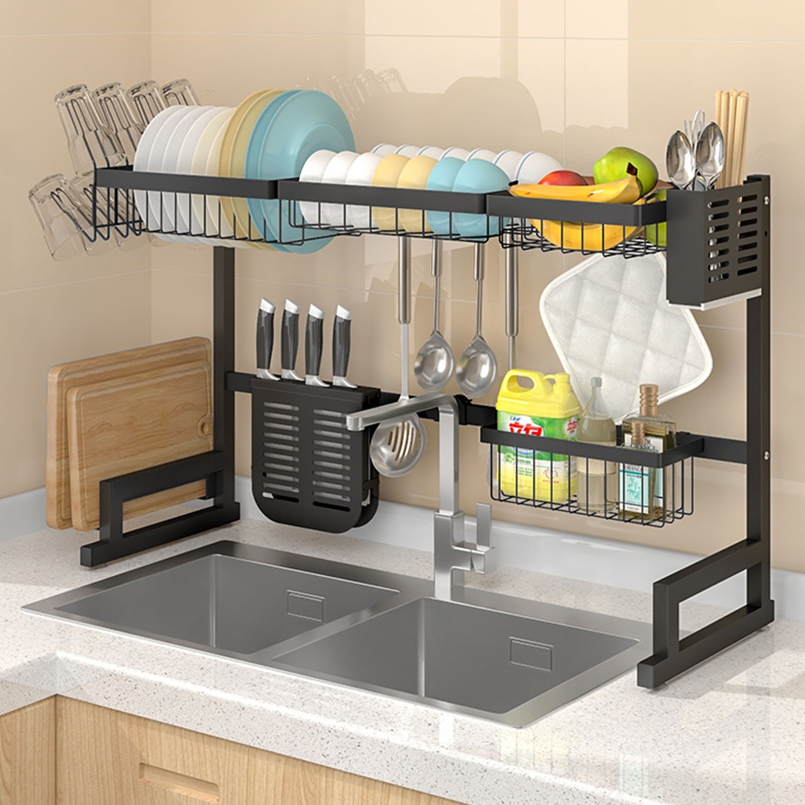 厨房水槽沥水架,采用优质的不锈钢材质,结实耐用,可拆卸的设计,方便清洗,沥水的设计,能快速的将碗碟上面的水沥干,让你的厨房更加整洁干净。