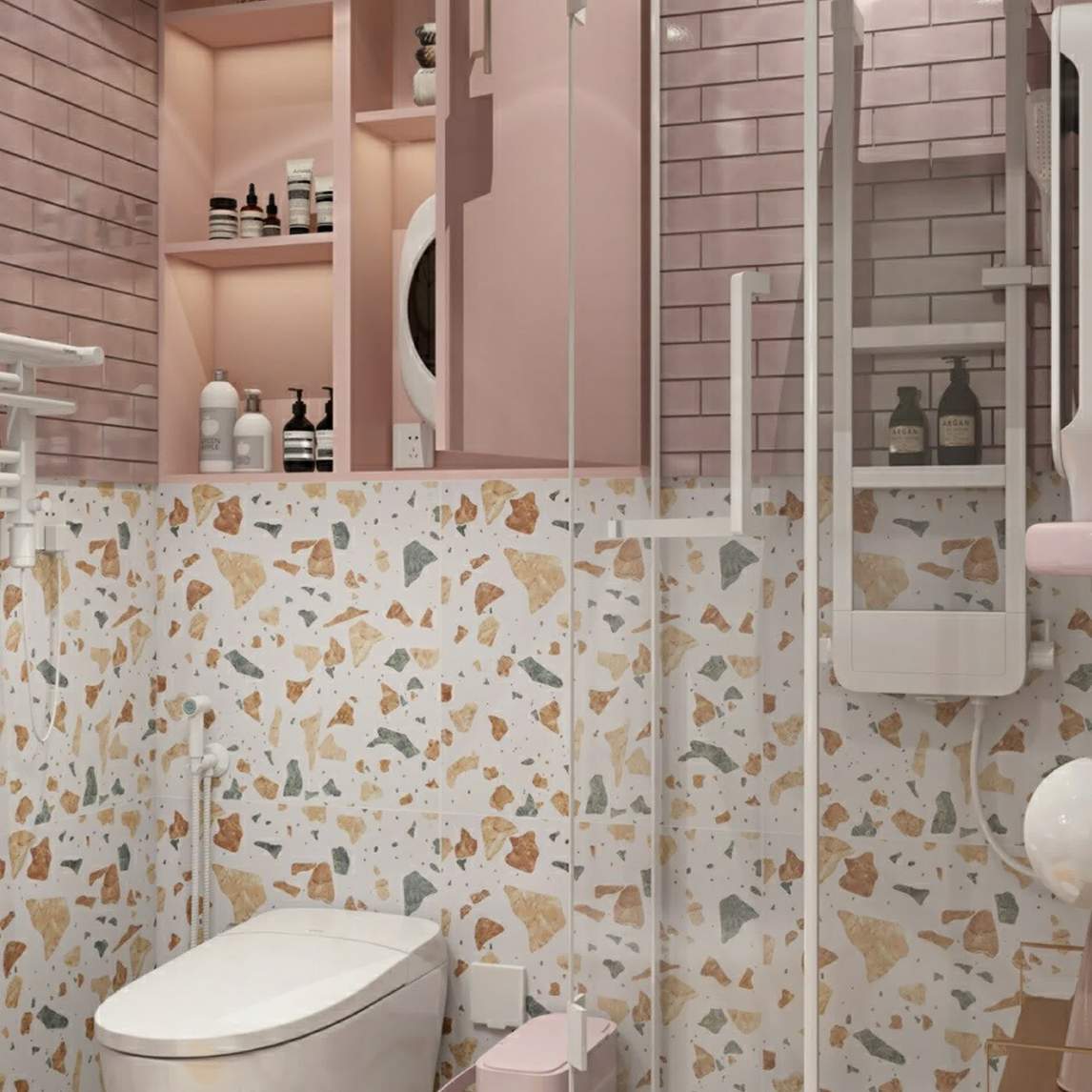 轻奢粉色系卫生间,简直棒极了