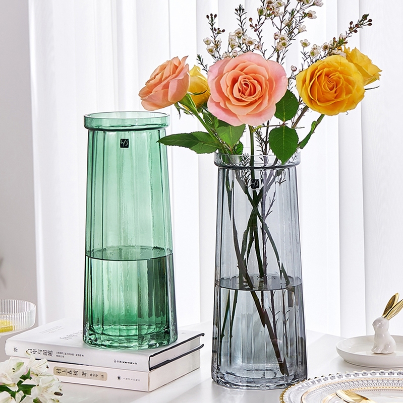混搭多样风,实现家居感。非常美的一款玻璃花插,花瓶是采用纯天然无铅原料,确保玻璃花瓶的纯净透明;细腻的螺纹美轮美奂;加入植物的点缀,让这款花瓶显得更出众。