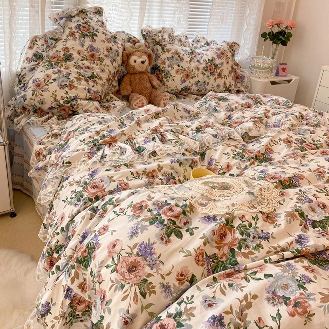 法式复古小碎花公主风四件套,绝美的玫瑰温柔的法式复古,春天最爱的玫瑰花,神仙颜值床品,高密度40支13372精梳棉,拼接双层花边,法式复古透明蕾丝边,被套拼接花边工艺,妥妥的复古风。