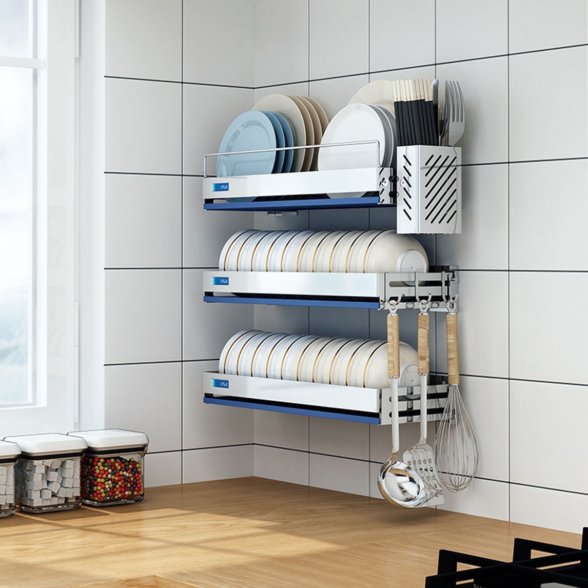 置物架采用不锈钢材质制作而成,做工精致质地厚实,大容量的储物空间,轻松满足你的储物需求,而且承重力极强,时间用久了也不易生锈,可放心使用。