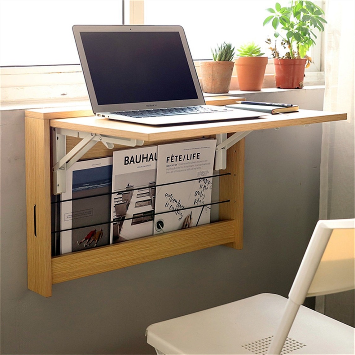 壁挂多功能折叠学习桌,书架结合桌子,功能加倍,安装在墙面上不占用多余空间,满足小户型在家的办公需求。