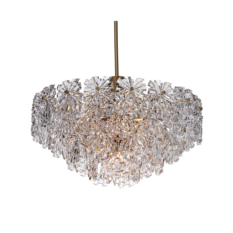 将剔透的水晶多面展示,延长光束的折射路径,巧妙的设计将单维直线变成三维空间,挂满枝头,开灯时,璀璨夺目