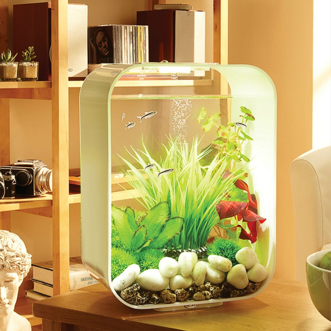 英国进口亚克力智能化的生态鱼缸,通过电子控制系统,将鱼缸、花盆、台灯整合成一条生物链,让这个生态系统中的每个环节,环环相扣,相互支持。