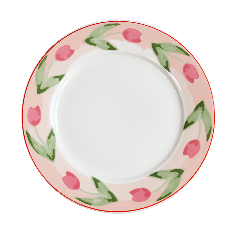 法式田园风的陶瓷盘,大小适中,用来盛装各种甜点特别的适合,为下午茶时光锦上添花,油画的色系,漂亮的郁金香点缀,让食物看起来特别精致。