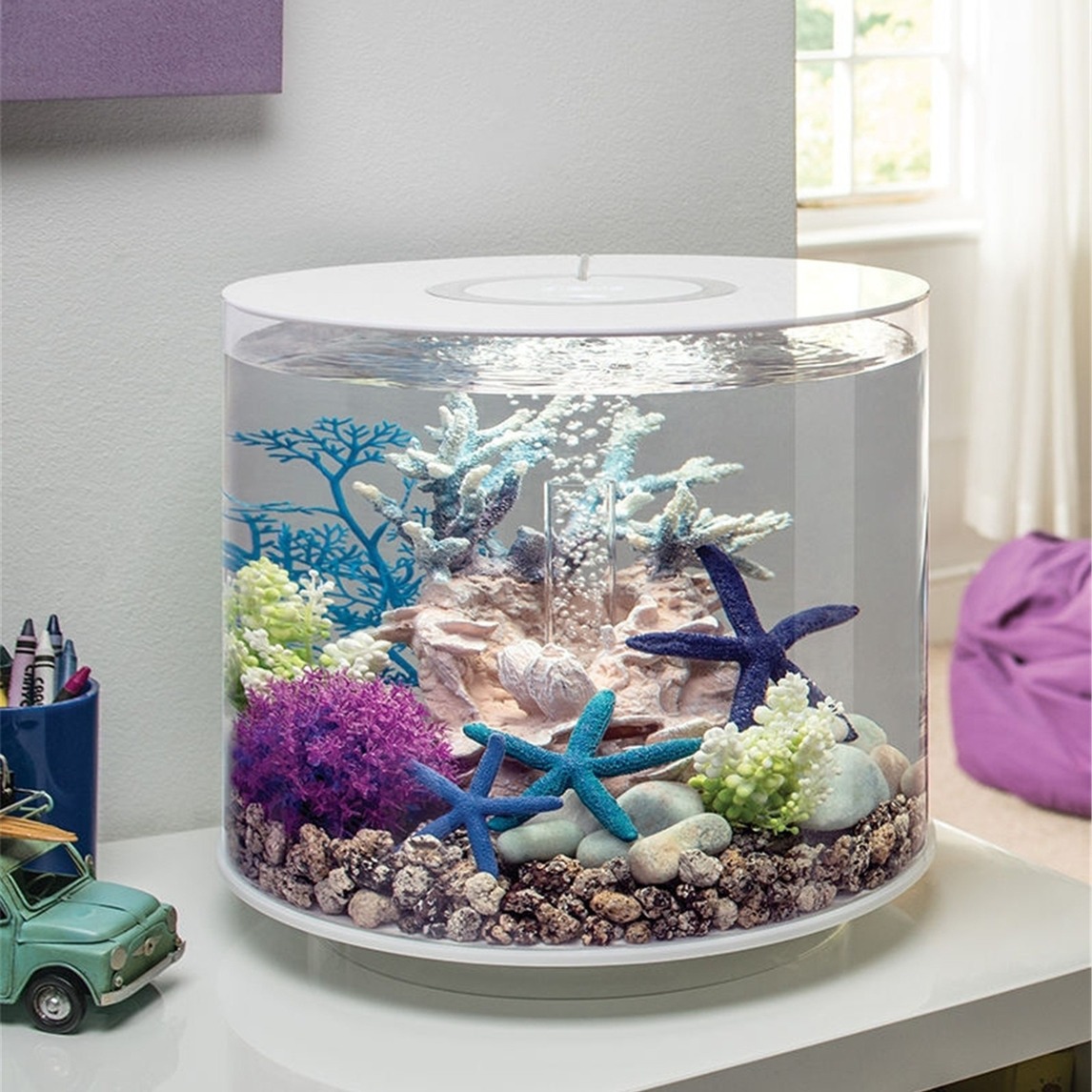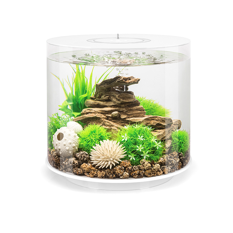 biorb小型圆柱鱼缸,适合摆放在家用或者办公桌,亚克力透明材质很通透,鱼缸免换水,适合懒人养鱼,看着鱼缸心情很放松。