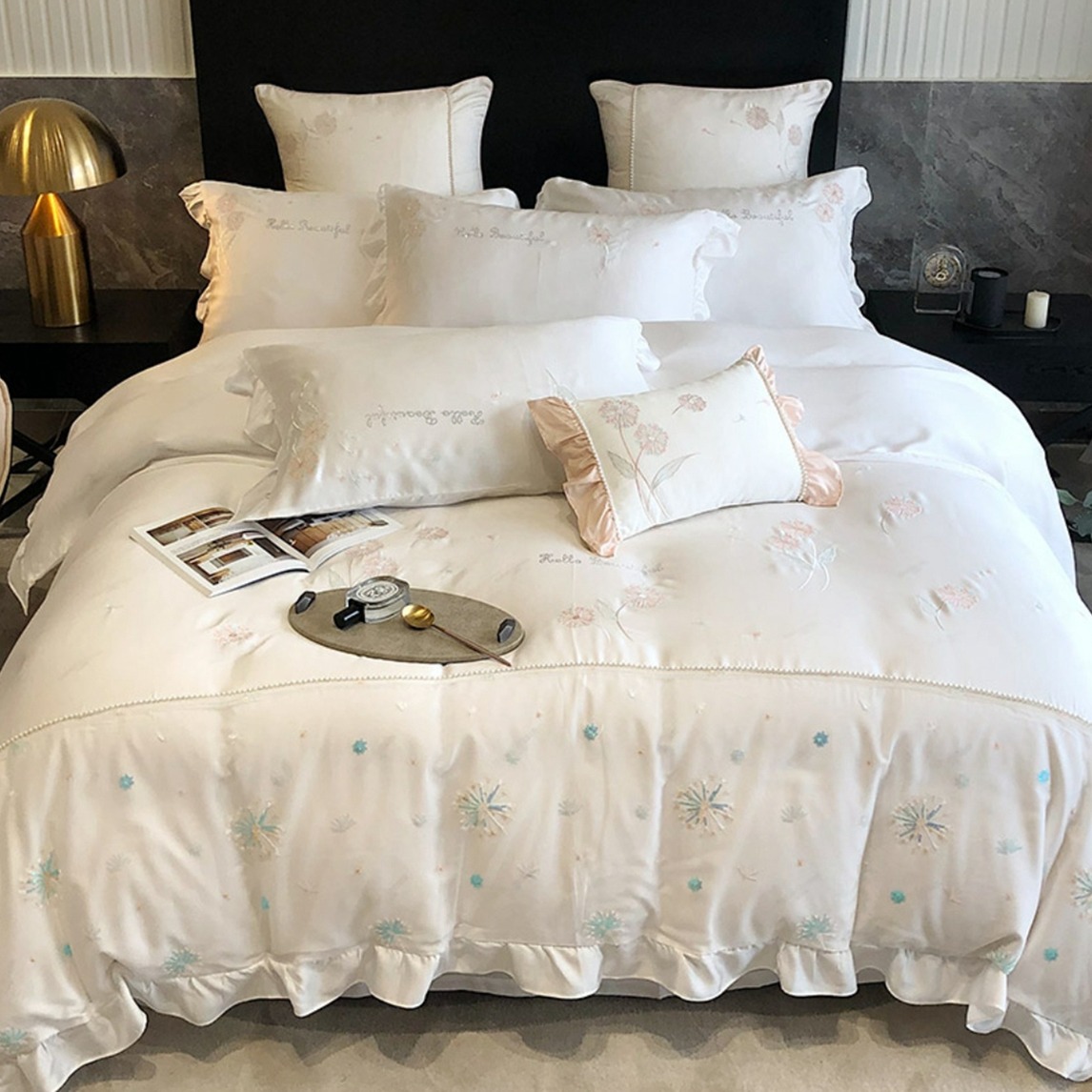 80支双面天丝四件套,天丝是植物纤维,从桉树中提取木浆为原料,兼具植物纤维和合成纤维多种,优良性能,吸湿透气性好,让肌肤感受到舒适睡眠,清凉一夏,精致刺绣,针脚紧密,增添不一样的公主风,唯美蕾丝花边设...展开