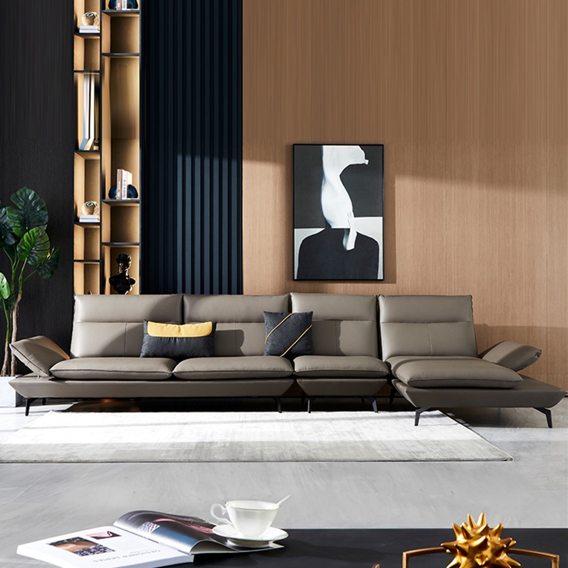 轻奢感客厅设计,真皮沙发+岩板茶几,金色的加持为空间加分不少,打造出高品质的生活体验。明亮通透的空间,让生活也变得轻盈舒适起
