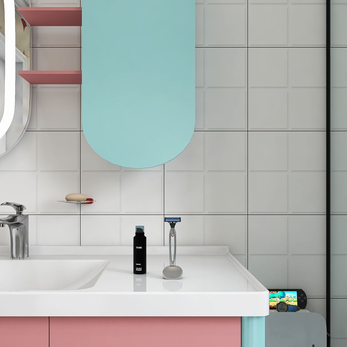 让人一见倾心的卫浴间,简约精致的现代风格,融入了撞色的拼接色彩的设计,让卫浴间的整体看上去更加的清新自在。墙壁上的小柜子,和洗手池遥相呼应,浅蓝色和砖红色的加入,让原本单调的卫浴间充满生机。台面上放的...展开