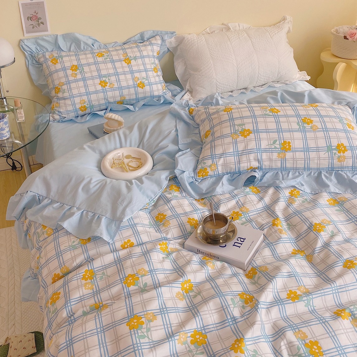 女孩子都喜欢花花的卧室,这款四件套采用全棉面料制作亲肤柔软,五颜六色的花朵点亮你平静的心,环保印染工艺处理,色泽牢固不起球。