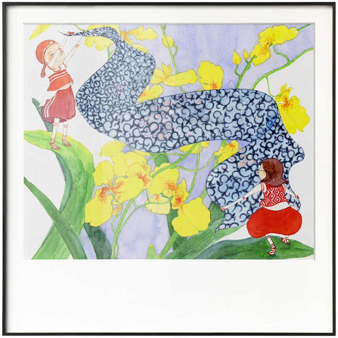 充满了童趣感的装饰画,一幅画面种,两个女孩子在花丛中玩耍,像极了两个好姐妹,能让孩子感受到分享的快乐。另外一幅则是多个孩子,吹奏着乐器,很是欢快!