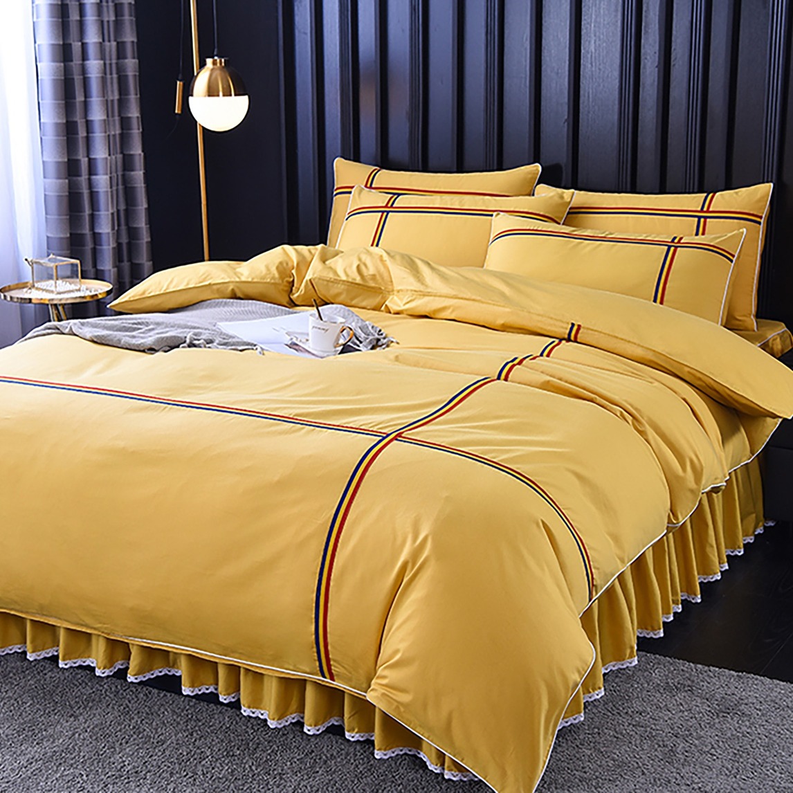 简约纯色全棉床罩床裙四件套,全棉面料,植物印染,高密高支,柔软舒适,吸湿透气,呵护肌肤,色泽柔和,双面设计,四季通用。