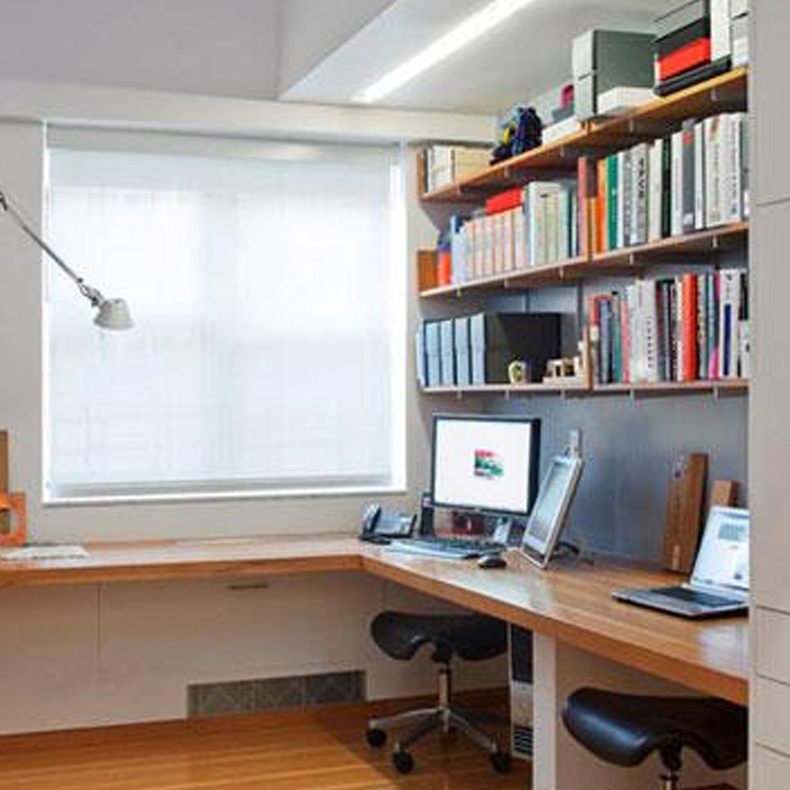 在书房里,想必都是看书或者工作的地方,所以要安静又舒心才是重点,一件简单的书桌外加可移动的板凳即可,有韵味有格调。