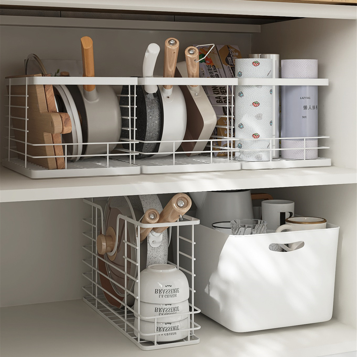 橱柜里面的空间有限,在有限的地方要合理利用起来,这样厨房不仅看起来整洁,而且会越用越大,利用大大小小的收纳筐,把物品整理好。