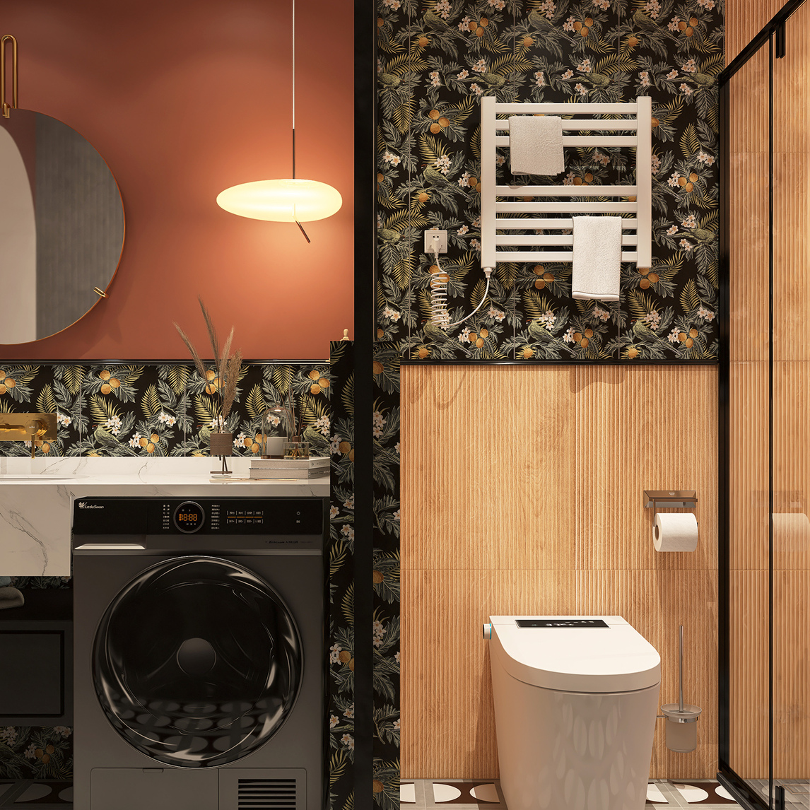 卫生间的三分离设计,让马桶区淋浴区和洗漱区各司其职,智能马桶和淋浴划分在里面,洗手台,洗衣机按在外面,方便又合理,实用起来又舒适。