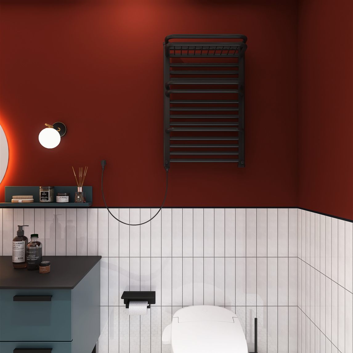 暗红色是设计师与屋主们的新宠儿,加入适当黑的暗红色,突出精致的感觉,复古与氛围都能达到,复古风格中运用红色则是浪漫之色。在卫生间里使用暗红色和黑色的五金配件,可以说是相得益彰~