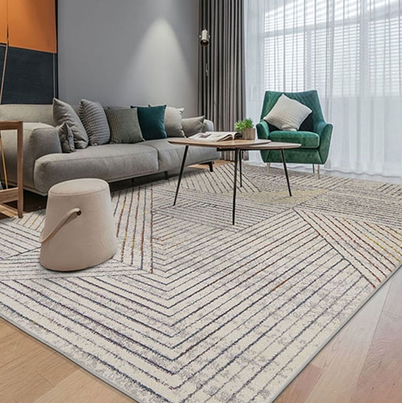 地毯采用简单纹理图案和清新色彩的混合设计,现代艺术气息十足,具有简约风格的美感,纯棉棉的材质,摸上去软软的,十分柔顺舒服。