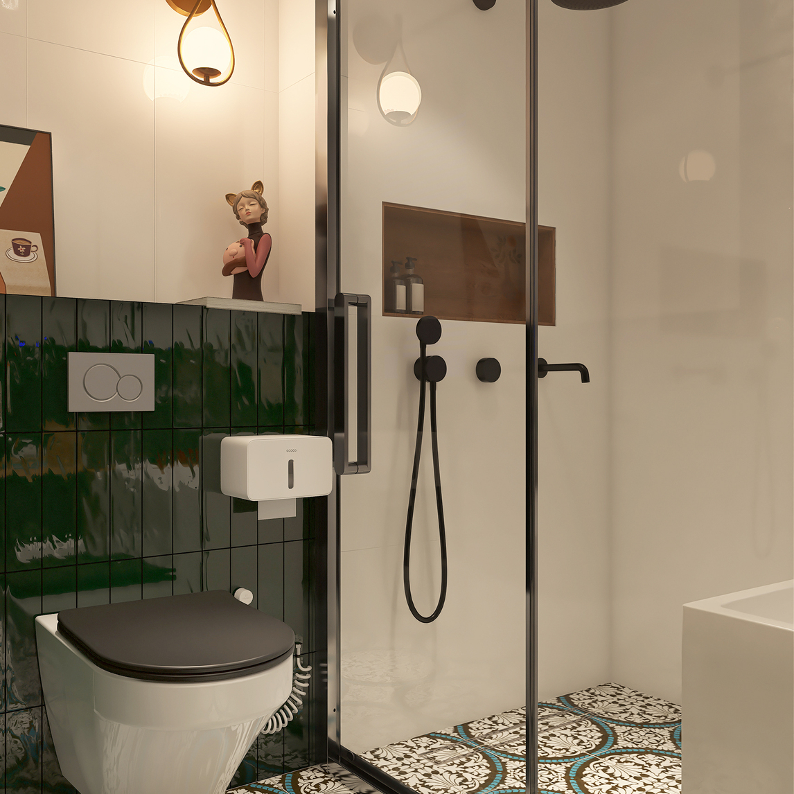 对于卫生间装修来说,一千个人眼里有一千个哈姆雷特,随着时尚潮流的发展,卫生间的设计再也不仅仅局限于传统的设计方案,卫生间是墨绿色加白色,白色缓冲了墨绿色的浓郁,使视觉上不会感到压抑沉重。