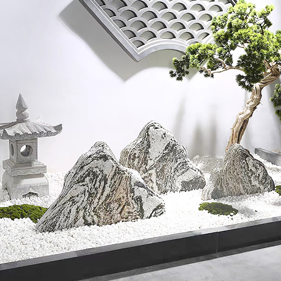 雪浪石质地坚润,黑地白脉,纹理清晰。底色为黑、灰黑色,明快的白色花纹,形似溪水瀑泉、浪涌雪沫,白色的纹络如雪花匀撒于石上,清晰而不张扬,亦如幅若隐若现的山水画卷~