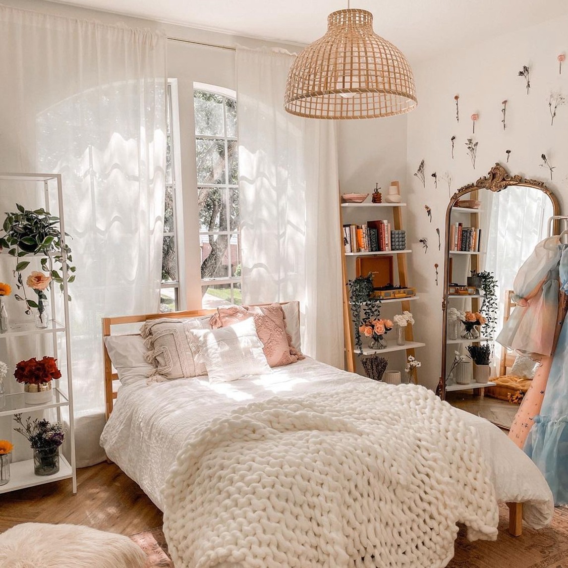 超梦幻的卧室非常有异域风情,阳光透过纱帘照射进来非常美,空调被芯吸湿透气,夏季的完美伴侣。 网红盖毯粗线手工编织非常柔软舒适。