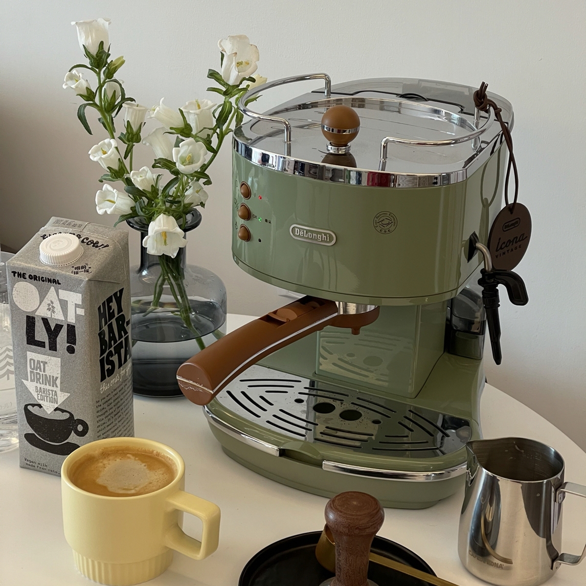 被颜值吸引入的这台复古咖啡机,可以满足基本的日常需求在家喝上机打咖啡,咖啡杯和北欧花瓶正好衬托咖啡机的颜值。