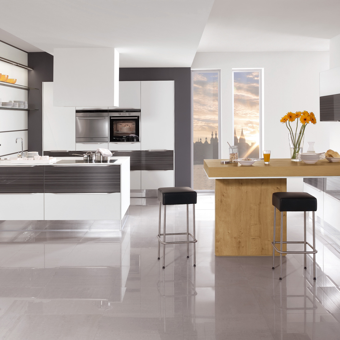 金属拉丝点缀是工业现代风极具表现力的设计,金属镜面的踢脚板与地面仿佛一体。木纹的吧台设计在工业风的理性中添加了一抹温馨之感,视觉上有很好的缓和效果。