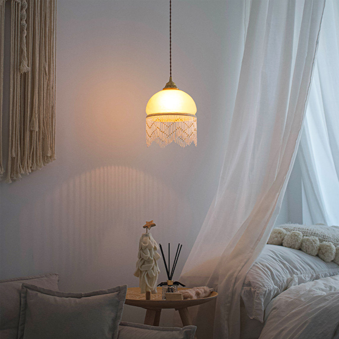 温柔的卧室总是有一种使人身心愉悦的魔力~不需要繁杂的装饰,一盏简约轻奢的小吊灯,搭配白色床幔,看上去温温柔柔,极具质感,想要视觉和触感上更舒适,还可以搭配一个素色抱枕,更能提升幸福感哟~