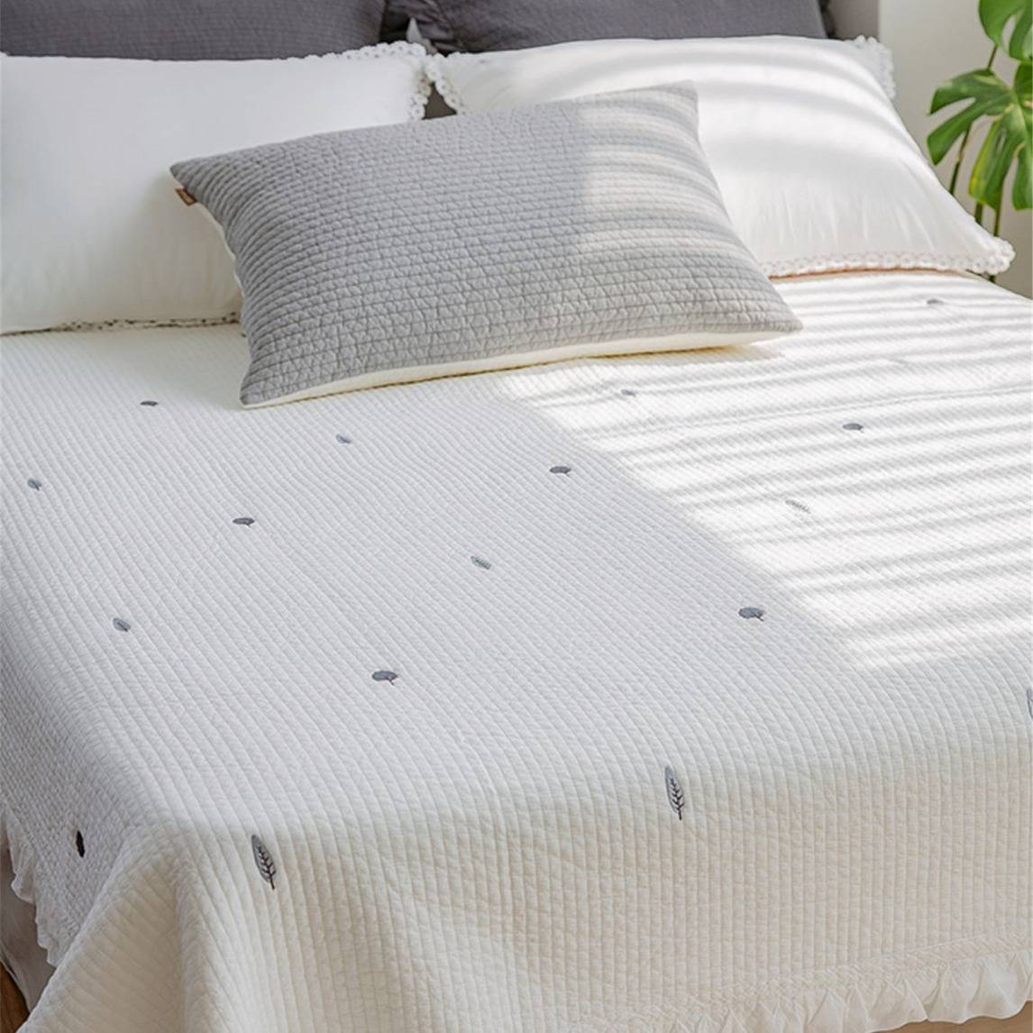 小刺绣的夏被,还可以当床单用,一年四季都有它的用处,柔软的面料,触感舒适亲肤,无论什么时候,都能给你满分睡眠。