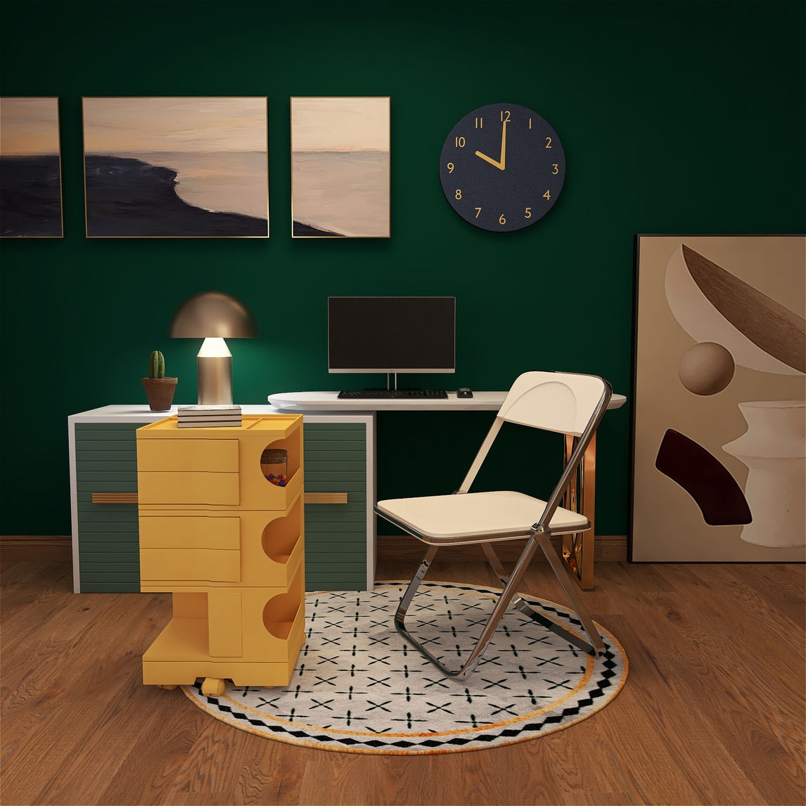 虽然是办公区域,但也不能失去乐趣!轻复古风格,深邃又带有神秘感,满屏的优雅气息。电脑桌与座椅均为可折叠设计,不占用空间,桌子还可做折叠床哦