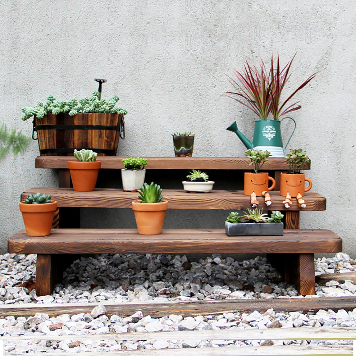 在顶楼或者院子里,铺上防腐的塑木地板,防水防晒不易老化,石雕搭配防腐木花架,高低落差,能放更多花,也让空间更有层次感,再放上一圈防腐木花架,能当篱笆能让植物攀爬,一个趣味十足花园就打造完成了~