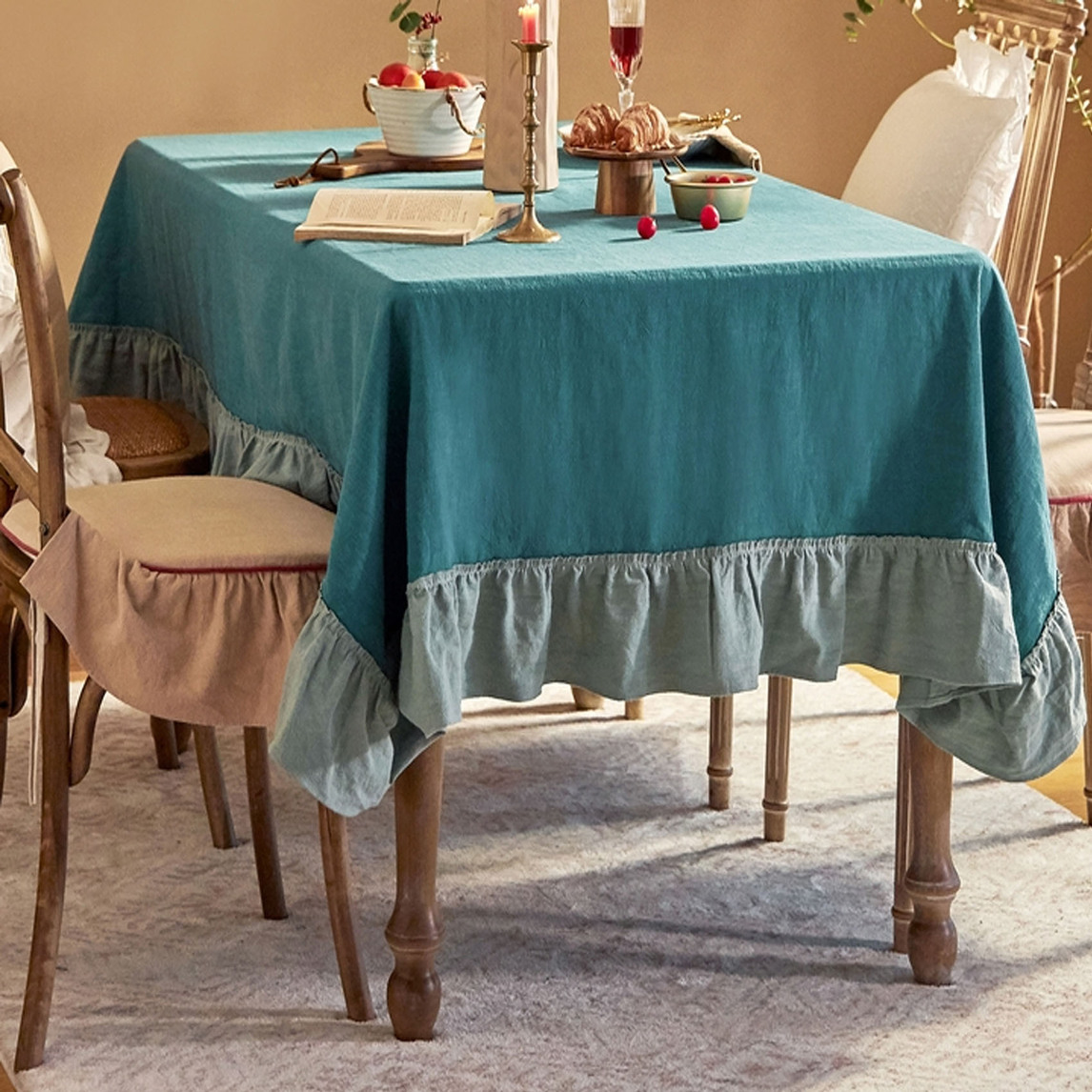 棉布荷叶边餐桌布,精致的做工的,这不仅是产品,更是时尚魅力诱惑的艺术品,为家居空间带来唯美的生活享受。