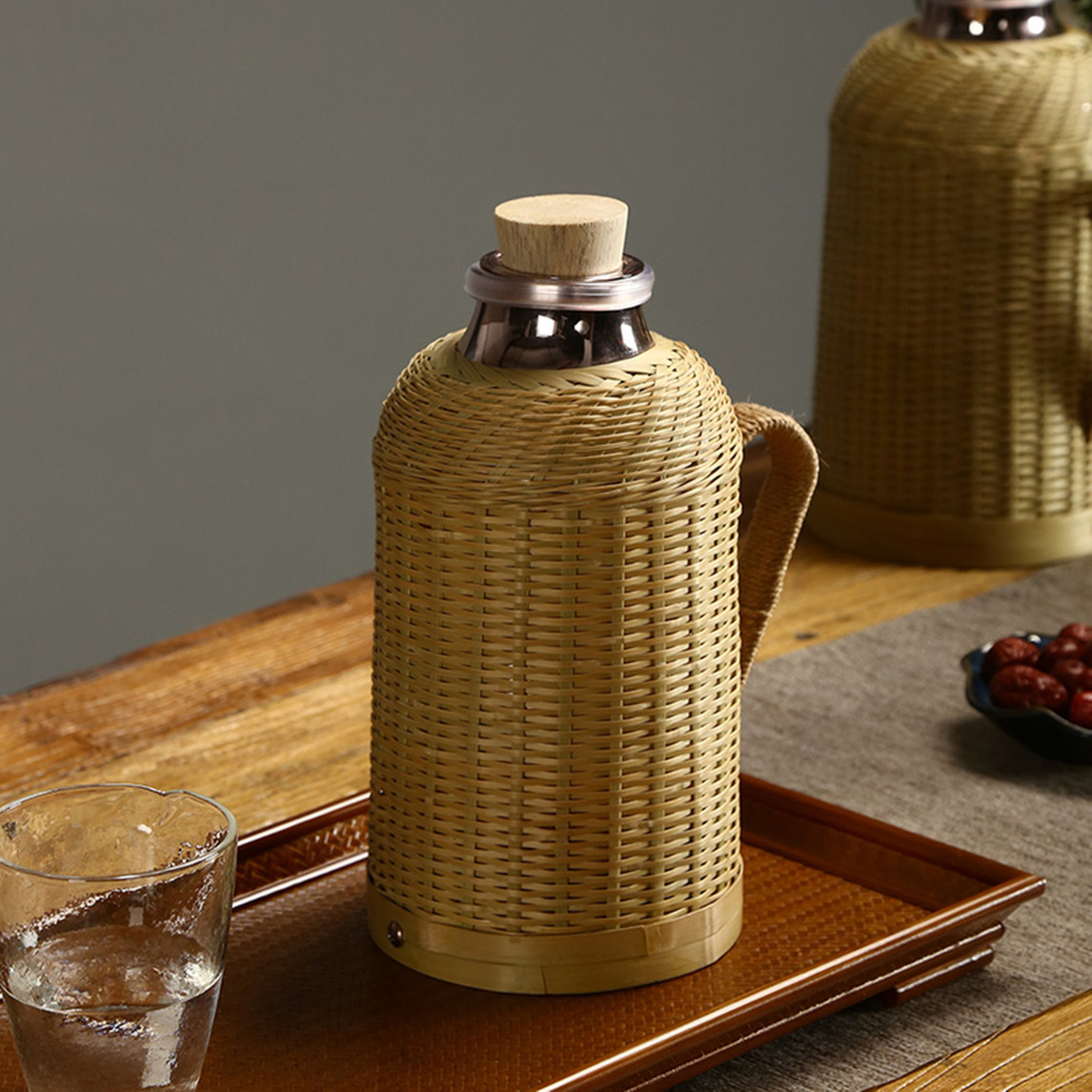 手工竹编的保温瓶,家用款的保温水壶,复古文艺竹编彰显自然清新的感觉。外壳是手工编织的,内胆是玻璃内胆,传统更放心。