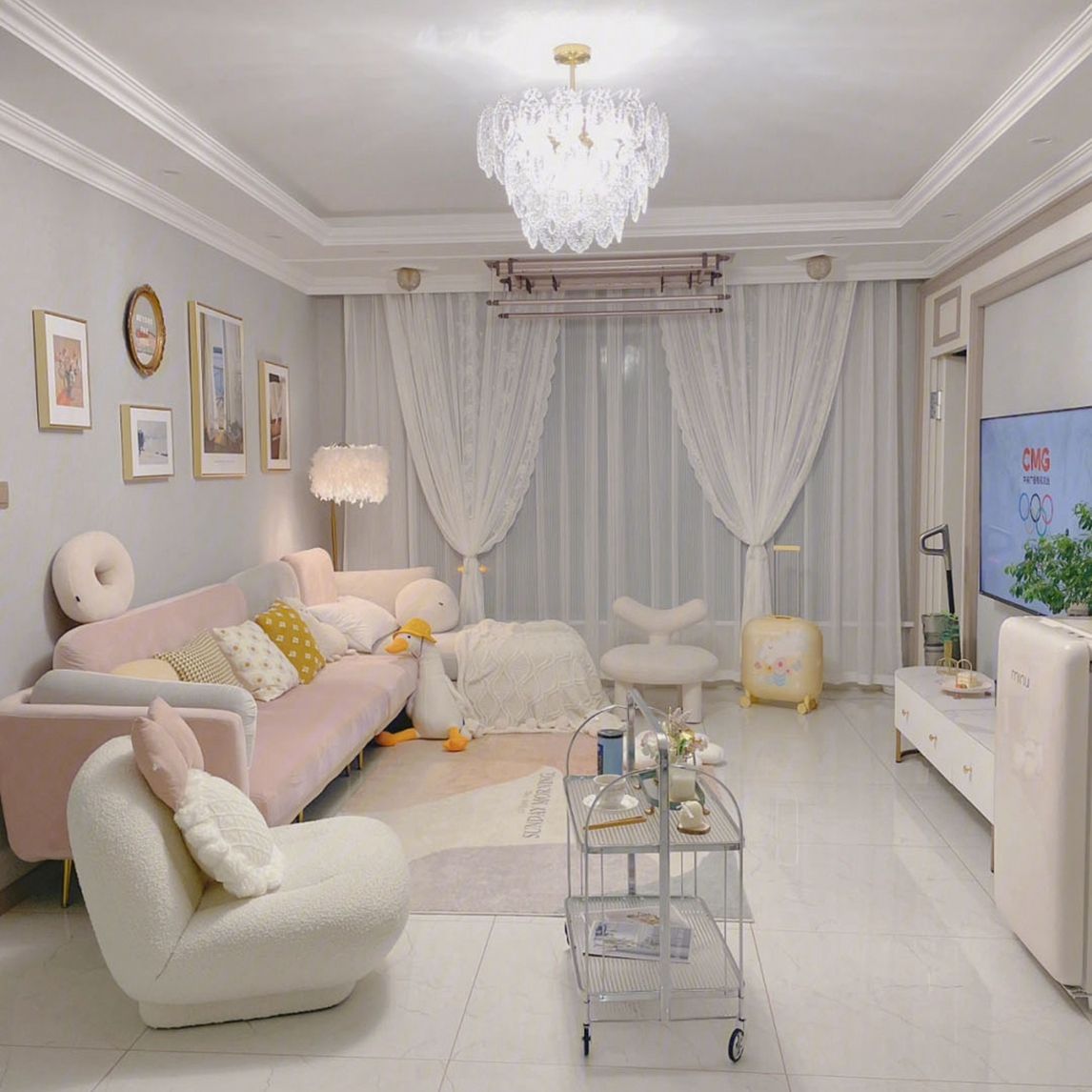 客厅选用的是拼接撞色的色调,非常温柔,随处一摆都是焦点,玻璃手推车长虹玻璃材质非常有格调。卧室的高靠背设计的拉扣皮床搭配任何床品都非常优雅,卧室的白墙没有多余的设计就是为了在家实现电影自由。