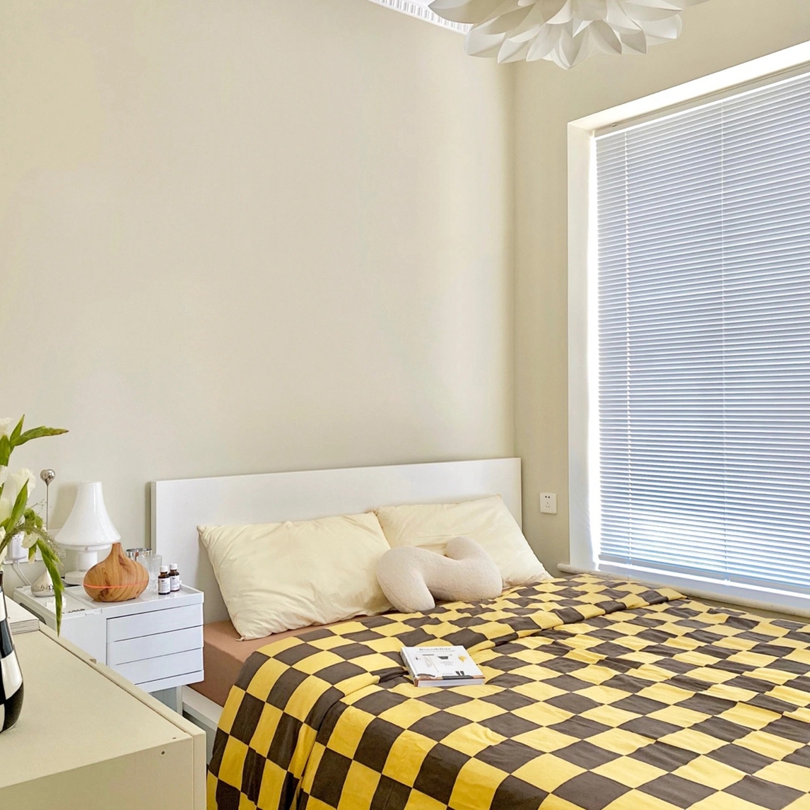 摩登复古四件套,超级美,一下子让卧室温馨起来。奶油色的卧室,真的是搭配什么都好看,而且不会太冷清,建议大家装修选择奶油色系哦,真的很流行。
