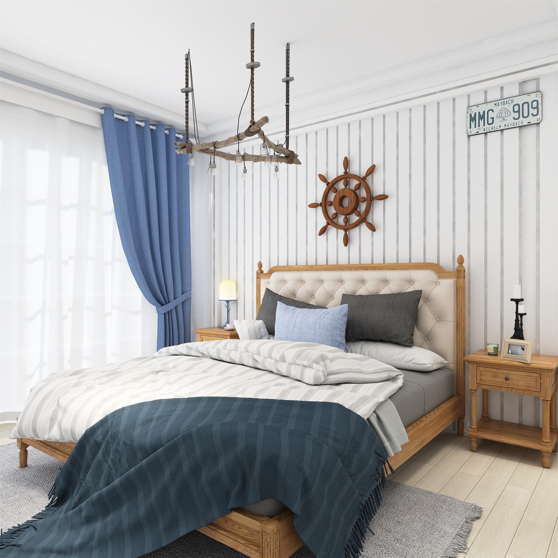 大面积的蓝与白,清澈无暇,复古的大地色地砖, 诠释人们对蓝天白云及碧海银沙的无尽渴望。 走进这个家里,就会不由自主地想到圣托里尼岛, 蓝色大海,蓝白建筑呼应,海滨景色尽收眼底。